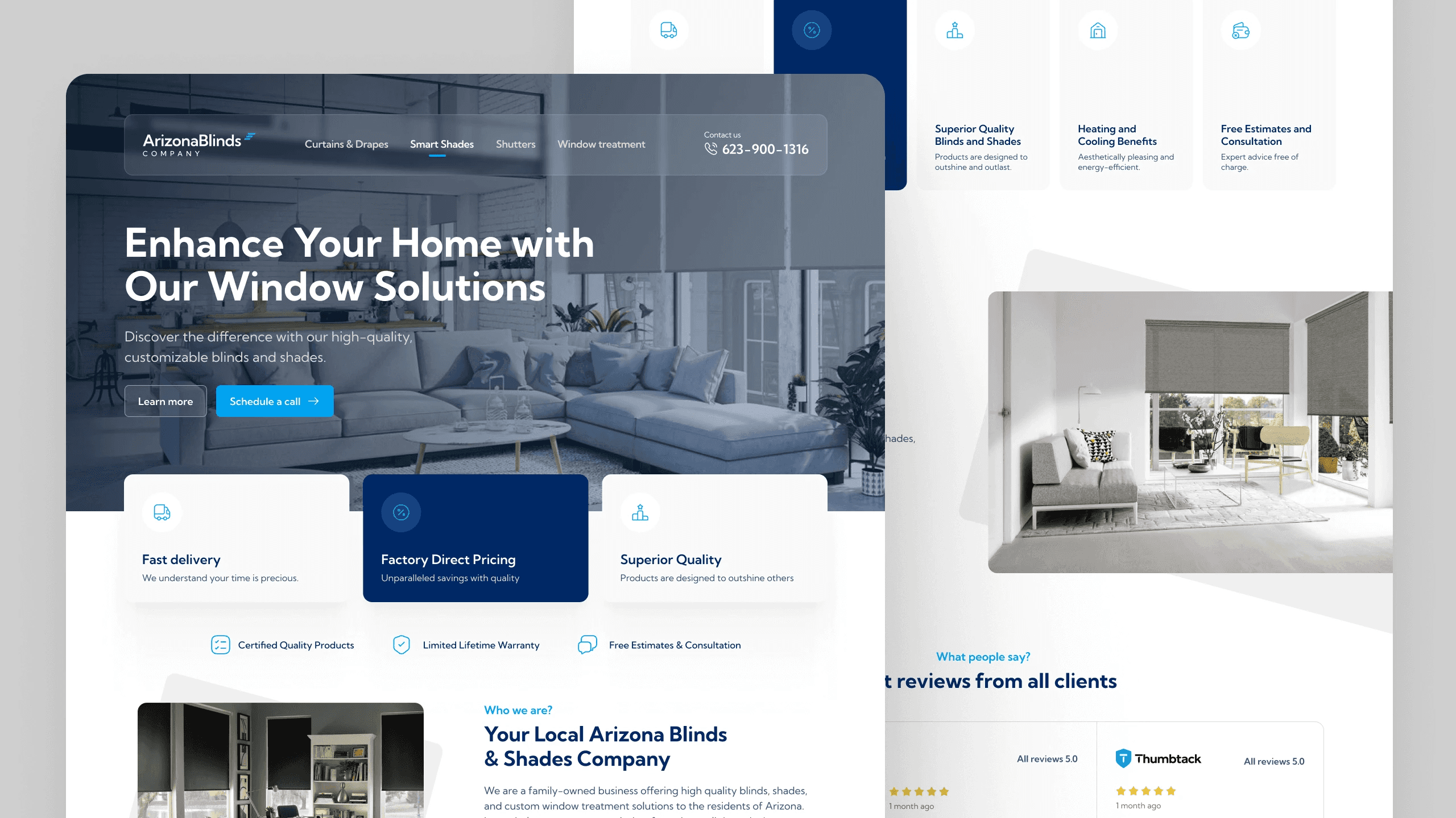I undertook a comprehensive website redesign for Arizona Blinds as part of a design contest. The objective was to create a clean, modern, and user-friendly website that effectively showcased their diverse product offerings and services.